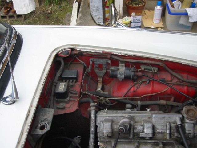 激安車検でおなじみのコバッ○ですが、その前に軽いノリで 近所を探したらディーラーでは修理できるエンジニアがいないとやんわり断られ(笑)ディーラに追い返される(まるで不正改造車の入庫お断りみたいだ(爆) 自分でユーザー車検しかないのか・・・と考えていたら近所に○バックがあったので早速予約、受付のオネーちゃんがちょっとアレな感じだったがまあ由として 金曜5時スレスレで役所に仮ナンバーを借りにいき、土曜日に予約して置いたので意気揚々と向かったが・・・。(ちなみに仮ナンバーは経路管轄の市役所の市民課で借りられます。わたしの住んでいる地域は750円です。自賠責と車検証・印鑑・身分証明書があれば借りることができます。仮ナンバーの正式名称は臨時運行許可証といって用途のための最低限の日数しか借りることができません。) 車検証を出して代車でサッサと土曜日をエンジョイしに行こうと思っていたら、「アレ、お客さん、封印外しちゃったんですかぁー?」の第一声。 ええ、だって仮ナンバーなんだから封印外さなくちゃ付けられないでしょうよ、というと「いやー、そのまま乗ってきちゃう人も多いんですよーホントは駄目ですけどね」と言われ驚愕。そうかぁ、外さないんだー普通は・・・。 車検が切れてて封印が外れている車の車検はココのコバッ○では前例がないから陸運に確認するから確認して火曜に連絡します、といわれ、返されることとなった・・・。(指定工場だと陸運に車体を持ち込まないから処理が厄介らしい) これで火曜は有給休暇決定だ!(笑)ああ、昨日早引けまでして仮ナンバー借りにいった俺の立場はどうなってしまうのでしょうか・・・。 ただ、ホッとしたのは門前払いじゃなかったのと車が古いことは問題ではなく、あくまで書類のやり取りの問題がネックになっているとわかったので一安心。 前回、ホンダディーラでは丁重に断られてるしねぇ。>ホンダ ただ今回調べているうちにわかったのは、ホンダのディーラーでも受けてくれるところとそうでないところがあるということ。私の車は前回の車検時にはちゃんとプリモのディーラーで車検を通しているのだが・・・やはり地域によって差があるようだ。 ただし応対は完璧。普通の人ならグラッと来るのかもね。見習わなくては。 車の新車ラインナップがかなりアレなので私は全然平気でしたが。 そんなこんなで結局家に戻ってきて愛車の洗車を久々に実行。 なかなかいい面構えですな。 洗車マニアの某氏にレクチャーされたシュアラスターなかなかですな。 氏いわく、カルナバがいいんだよ!、とのこと。 確かにヤレた塗装にはてきめんに効きますな、コレ。 ただWebページの使用者レポートが激しく胡散臭いところが何とも。 物がいいだけに惜しい。 程よく気分が乗ってきたので各部の清掃を始める。 フロアマットをはがすとフロアに穴が。 見なかったことにしたいが、過去にそれをやって痛い目にあった経緯が・・・。 とりあえず助手席側のフロアマットがいつも濡れている原因はわかった。 確かにこれで雨の中を走ればタイヤに巻き上げられた水がフロアマットに直接かかるよねぇ。塞がなくては。これ以上腐っては堪らん!(笑) 毛細管現象でマットに浸透するのでフロア一面がオレンヂ色に!! オールドタイマー的にはオイシイシーンですな。 これは近いうちにいかにもOT的なPOR-15浸しのグラスマットでも貼り付けておかなければ原型すらなくなってしまう。 そういえば以前助手席へ座った某氏が、この車シート動かせないの?と文句をいっていたのを思い出し、レバーを引いて動かそうとするが全く動かない。 きっとシートレールが錆びているに違いないと見てグリースをレールに塗りつけて 無理やり前後へ。やってみるもんですな。動きました。 助手席だけなぜかレバーが二つ付いていることを発見。 しかし何に使うのか左側のレバーは全く動かない。 プライヤーで挟んでさんざんこねくり回して渋いながらも回ったけどシートに変化なし。何に使うのだろうか・・・。 ウィンドウオッシャーのリザーバータンクが経年劣化で割れてきていて、すべて抜けてしまっていたので気にもしなかったが、お取り寄せしたミツバのウィンドウオッシャーキットのタンクが予想よりもかなり大きく、ステーも使い回せないので取り付けていなかったのだ。 いずれは直さなくてはいけないので、修理方法を考える。とりあえず外したタンクを凝視するとポンプへつながるホースの接続部から盛大に漏れていることを確認。タンクの上の方にはヒビが入っていてUpperまで入れれば、たぶんそこからかなり漏れそうな予感。 漏れていた所は、前オーナーが修理したと思われるアロンアルファでお手軽補修がされていたのだが、この漏れっぷりを見るにこのプランは全く駄目な事は想像に難くない。ならば2液混合のポリプロピレンがくっ付く接着剤をと、チョイスしに近くのホームセンターへ。2液混合の